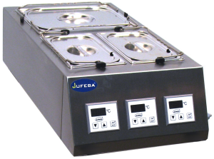 Separate heating elements keep every individual container in the desired temperature between 20°C and 110°C. The temperature is controlled very exactly by a microprocessor controller for each container and is always shown on the display. The adjusted temperature is stored even after switching