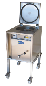Rührwerksantrieb ausgestattet. Die Rührwerks-Sicherheitsschaltung schaltet das Gerät im geöffneten Zustand automatisch ab. Die Rührwerksflügel sind je nach Gerät funktionsoptimiert gestaltet und können zur Reinigung mit einem Handgriff entnommen werden. Bei den Standgeräten ist der Rührwerkskessel mit einem Bodenauslauf versehen. Jedes Standgerät ist entweder mit einer Thermoöl-Mantelheizung ausgestattet.